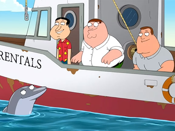Un carico di Mercedes finisce nel porto di Quahog e Peter e gli altri, cercando di recuperarne qualcuna, incontrano un delfino di nome Billy che regala al ciccione uno stemma della famosa casa automobilistica tedesca in cambio di un soggiorno in casa Griffin. Intanto Stewie è costretto a passare il tempo in un asilo degli incubi, in cui la maestra trascura i bambini e li maltratta. Brian la denuncia solo dopo aver saputo che è fidanzata. |