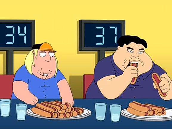 Chris batte il campione del mondo di abbuffate di hot dog ma Lois è molto preoccupata e decide di mandarlo ad un campo per bambini grassi trascinando dentro anche Peter. Un bambino viene trovato assassinato per strangolamento e sembra che la prossima vittima predestinata sia il rampollo di casa Griffin...