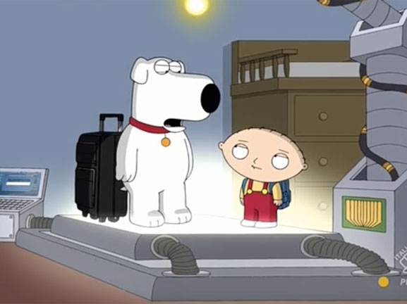 Brian vince dei biglietti per un concerto di Celine Dion a Las Vegas e decide di invitare Stewie a fargli compagnia. Il piccolo genio ha inventato una macchina per il teletrasporto che però sdoppia la coppia catapultandone una immediatamente a Las Vegas, la quale trascorrerà una vacanza meravigliosa, e l'altra, invece, giunta con i mezzi tradizionali, passerà dei giorni di vero inferno! |