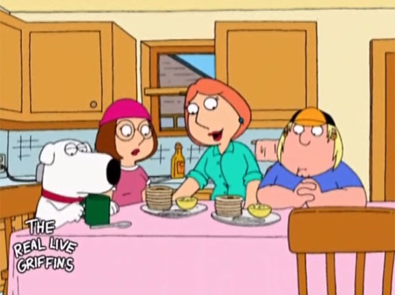 Meg organizza un pigiama party a casa sua ma ha un brutto presentimento: teme che la sua famiglia possa metterla in imbarazzo davanti alle sue amiche. Le sue preoccupazioni sono fondate e infatti ogni "Griffin" ne combina una in modo da rendere impopolare la giovane occhialuta. Disperata decide di trascinare la sua famiglia ad un programma televisivo in cui si dibatte tra genitori e figli per così far capire alla gente con che tipi è costretta a vivere! La puntata ottiene un successo tale che viene proposto a Peter di creare un reality in cui la sua famiglia si esibisce per 24 ore al giorno sotto le telecamere. Comincia così il programma televisivo con protagonisti i Griffin ma c'è un intoppo durante le prime giornate di riprese. Meg risulta molto impopolare e viene sostituita da una nuova attrice. A quanto pare la stessa sorte non toccherà solo a lei....