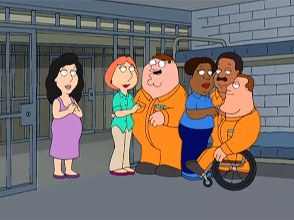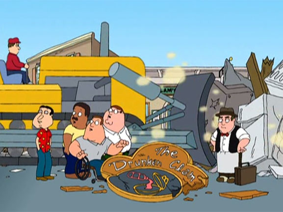 Arriva un uragano a Quahog e il rinomato Bar dell'Ostrica Ubriaca viene letteralmente spazzato via dalla furia del vento! Peter e i suoi amici sono disperati ma un nuovo locale viene aperto al suo posto. Purtroppo le aspettative vengono deluse perchè si tratta di un pub inglese dove viene servito tè e birra calda. I 4, spinti dalla voglia di un nuovo locale dove poter andare a ubriacarsi, decidono di sabotare le forniture del bar in questione. La mattina il TG annuncia che il pub è stato devastato dalle fiamme e il ciccione e i suoi amici vengono arrestati con l'accusa di essere i piromani responsabili. Lois, con tutto il suo fascino, riesce a estorcere la confessione all'ex proprietario del pub che voleva soltanto incassare i soldi dell'assicurazione. Nel frattempo Stewie cerca di educare la figlia del truffatore alle buone maniere e ad un linguaggio corretto. Esilarante! |