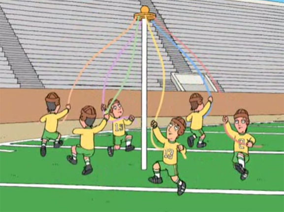 Peter partecipa alla riunione degli ex alunni e qui incontra il vecchio compagno stella della squadra di football degli England Patriots; il quale rimane colpito dallo scatto fulmineo del ciccione verso il bagno: Peter diventa quindi la punta di diamante della squadra ma si fa prendere dall'euforia per la fama e il denaro guadagnati e viene venduto ai Silly Nanny, squadra londinese di femminucce patentate... Mentre la famiglia Griffin emigra in Inghilterra e si avrà lo scontro tra i due continenti, Stewie impara sulla sua pelle il detto "chi di spada ferisce di spada perisce". |
