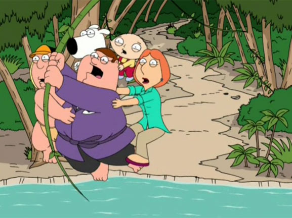 Arriva il primo giorno di liceo per Chris che viene messo in guardia in quanto "novellino". Brian gli suggerisce che non deve scappare dai suoi problemi come fece lui quando si arruolò nell'esercito della pace e il giovane, preso in parola, monta sul primo aereo diretto in Sudamerica. Qui si integra con una tribù di indigeni riscuotendo anche un discreto successo verso le ragazze del posto. La famiglia viene a sapere dove si trova e lo raggiunge il prima possibile. Lì Peter fa il gradasso con i pochi spiccioli in tasca dal momento che quei selvaggi non avevano mai visto tanto denaro tutto insieme. Presto il ciccione capisce di aver sfruttato l'occasione per sfuggire dai suoi problemi: avendo cambiato lavoro si ritrova sottopagato e umiliato da un superiore decelebrato; così tutta la famiglia riparte per tornare a casa non senza essere inseguiti dalla tribù.... |