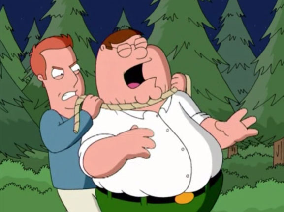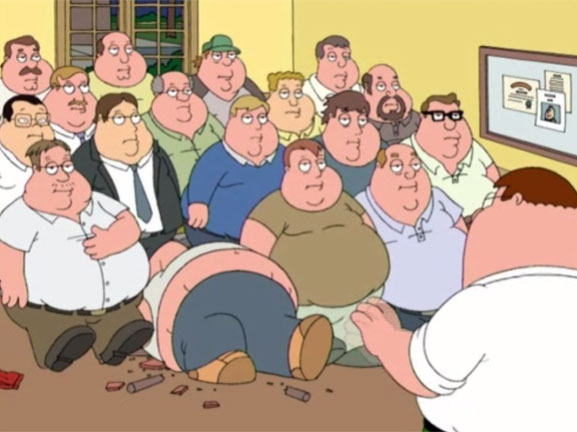 La visita dal dottore di Peter lo convince di essere un ciccione e così viene istituita un'organizzazione che racchiude tutte le persone obese e orgogliose di esserlo. Intanto Lois, per puro caso, scopre in una vecchia foto di famiglia, di avere un fratello; purtroppo quest'ultimo è rinchiuso in un manicomio ma la signora Griffin riesce a farlo uscire. Presto capisce il motivo dell'internamento: il fratello è un pazzo assassino e sta facendo piazza pulita di tutti i ciccioni a Quahog. Anche Peter, ovviamente, è in pericolo e solo Lois può salvarlo... |