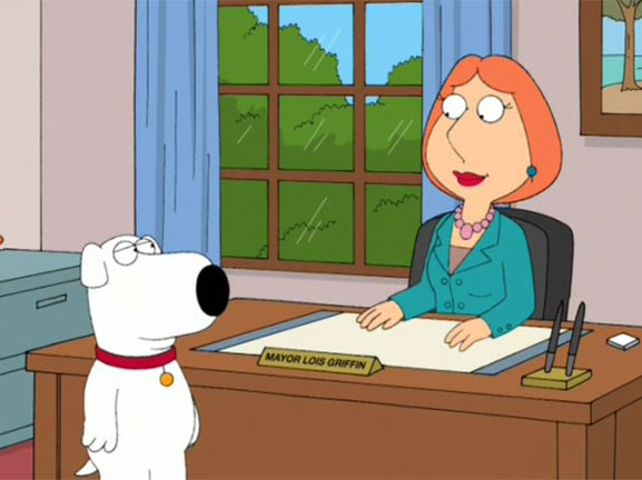 Nel lago di Quahog vengono riversate le scorie di una raffineria di petrolio rendendo l'acqua più inquinata che mai. Lois non ci sta e, dopo il rifiuto del Sindaco West di porre fine a questo disastro ambientale, decide di candidarsi come nuovo primo cittadino. Tutta la famiglia Griffin e gli amici di Peter riescono a raccogliere i voti sufficienti, ma presto Lois si renderà conto quanto la politica porti le persone ad atti riprovevoli per il proprio tornaconto... |