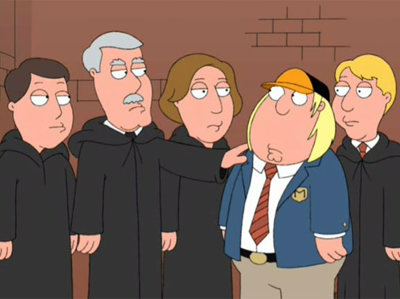 La scuola di Chris fornisce ancora libri di testo della prima metà del novecento! Così Lois decide di andare a protestare con il preside ottenendo soltanto l'espulsione di suo figlio dall'istituto: infatti, a causa dello scarso rendimento degli alunni del liceo le sovvenzioni statali sono molto basse, di conseguenza il consiglio scolastisco decide di cacciare il suo peggior alunno! Chris, grazie alla spinte di suo nonno, comincia a frequentare una scuola per soli ricchi ma viene emarginato da tutti per la sua povertà.... |