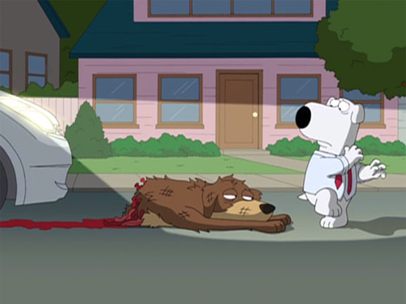 Brian, ubriaco fradicio e assonnato, investe un cane con la macchina spezzandolo letteralmente a metà e ne sotterra i resti.... Devastato dai sensi di colpa decide di confessare l'accaduto alle autorità ma si accorge che la dignità e la vita di un animale nella nostra società non hanno alcun valore, rimanendo profondamento ferito. Alla fine, però, capirà che i Griffin lo amano e lo considerano parte della famiglia... |